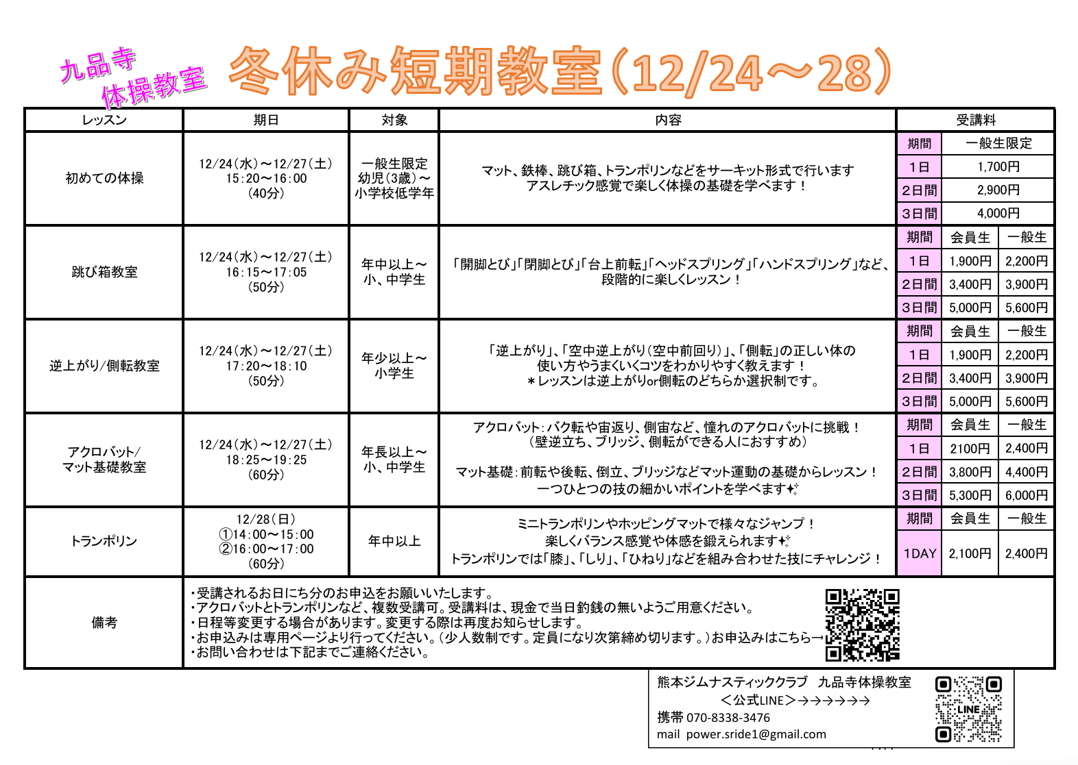 お待たせしておりました「九品寺体操教室 冬休み短期教室」開催のお知らせをいたします🎄